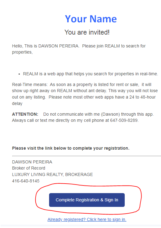 Body Of Email . Go To Bottom and Click Complete Registration