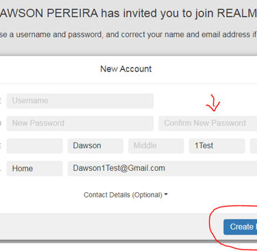Create Username and Password